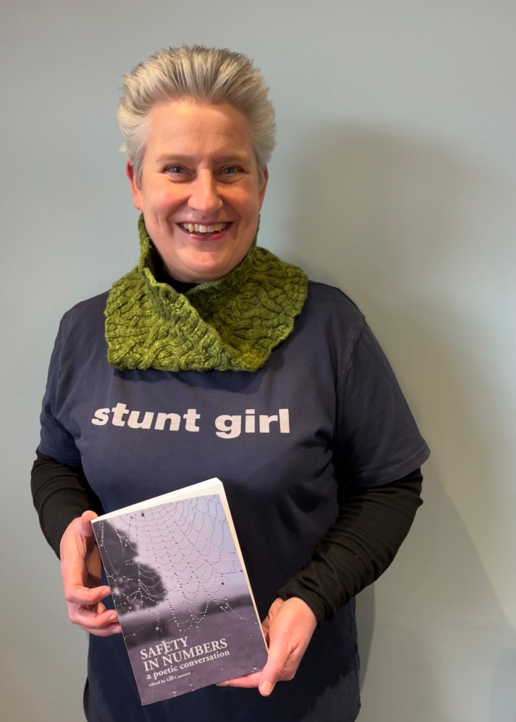 Once when wearing this t-shirt I was asked by a stranger what my stunts were. I answered with, “I eat fire whilst unicycling.” This had them leaning in with, “Really?” before we both stood in a moment of disappointment as I admitted that this was in fact an untruth. This interaction, and the fact that I have also been asked if I am a trapeze artist, came to mind when I was writing the poem that I would submit to the Safety In Numbers project.