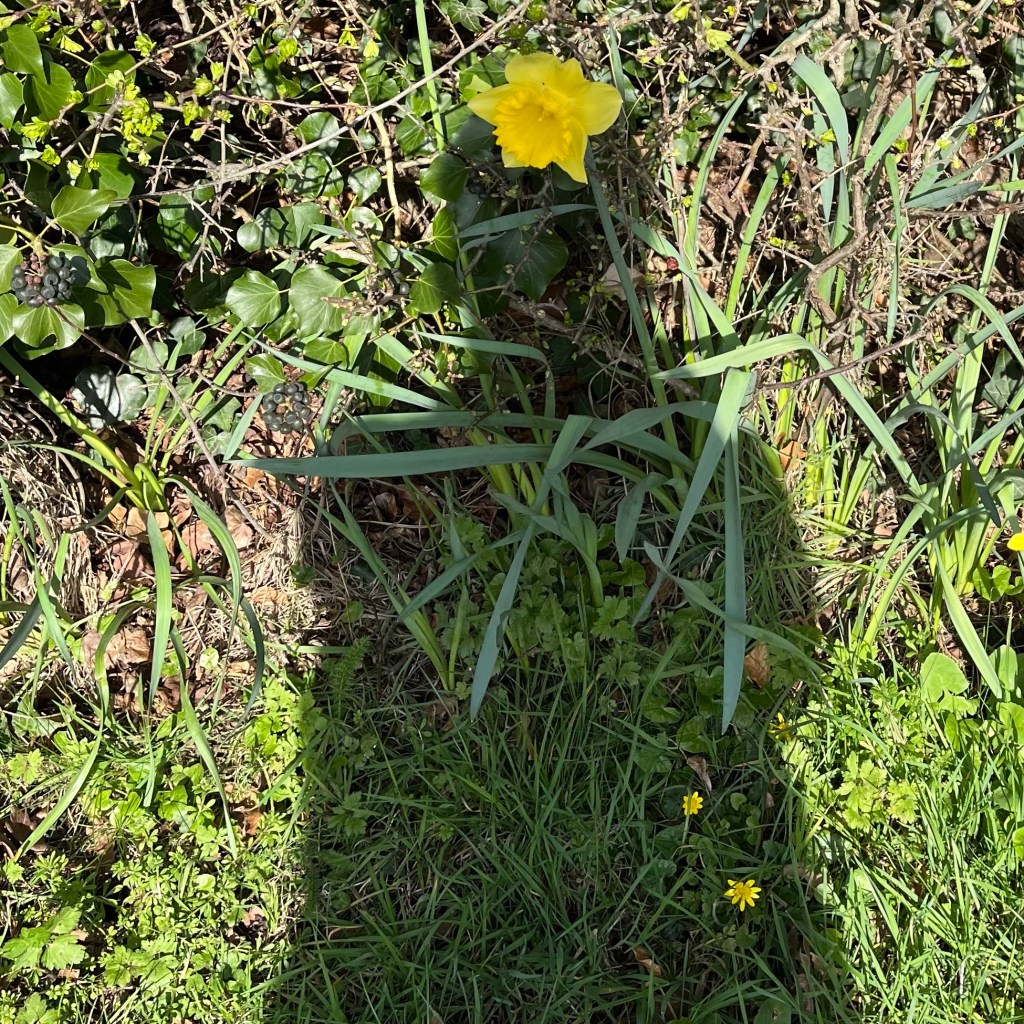 Alt text says this week’s photo is a yellow flower in the grass. I say it is my shadow featuring a midforehead daffodil. I also say I was rather hoping to create a daffodilesque dalek photo. I guess it is distinctly unlikely that alt text would come up with that description even if the photo was on point, but perhaps I also didn’t pull it off quite as I had planned. It was fun though and it was taken during my daffodil noticing/clear my head/have a think walk one sunny morning last week.